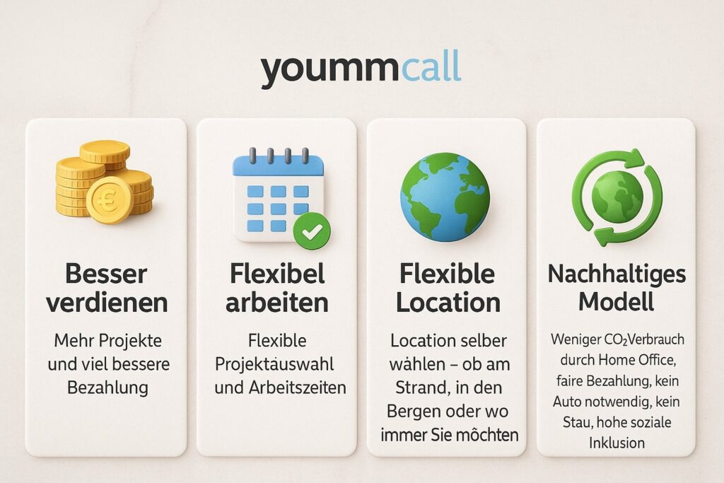 Bei yoummcall wirst du als Freelancer im Kundenservice oder Vertrieb genau dafür gesucht: für
